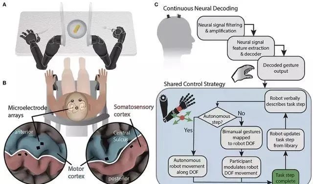 来自约翰霍普金斯大学的这项研究,通过脑机接口让一位瘫痪30年的志愿者做到同时操纵两个机械臂。
