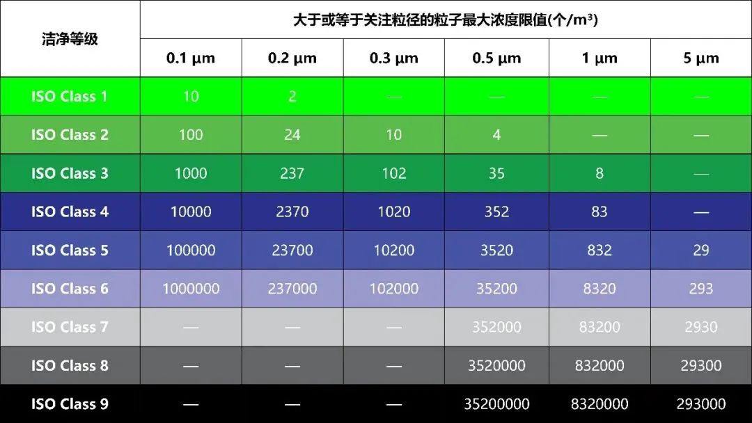 洁净等级对应粒子浓度限值